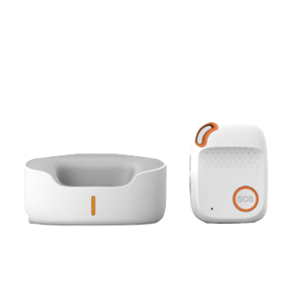 Het luxe oplaadstation heeft een extra knop, hier kunt u een SOS oproep mee maken. Deze functie werkt bij een Bluetooth verbinding tussen de alarmknop en het oplaadstation. (Zie afbeeldingen hiernaast) De weergegeven prijs van de alarmknop, is inclusief het oplaadstation.